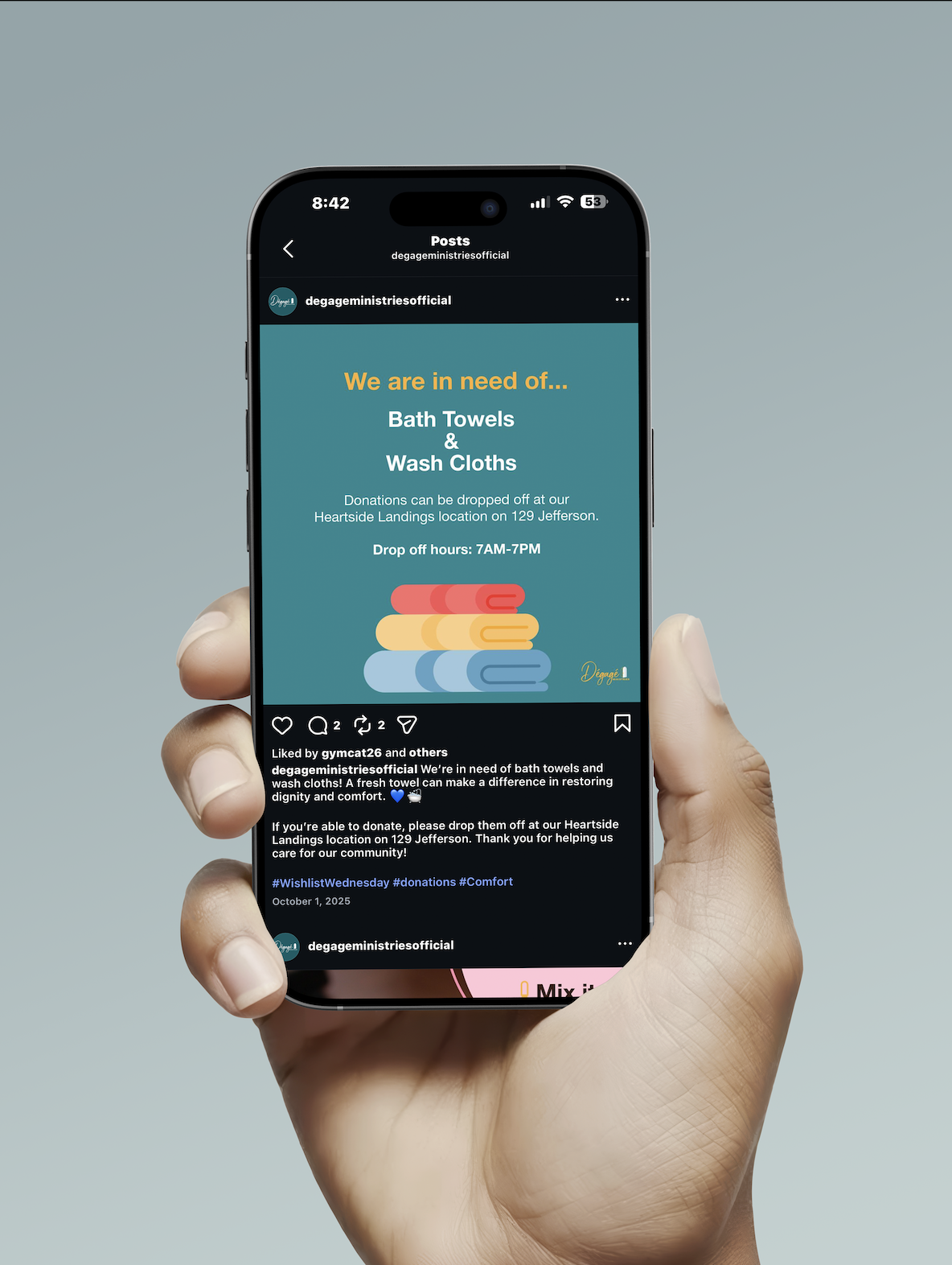 I am currently employed at Dégagé Ministries as the Social Media & Graphic Design Specialist where I manage several social media accounts and all design projects for Dégagé and its workforce development program called The Open Door Bakery. I follow their brand identity with some room for added creativity.