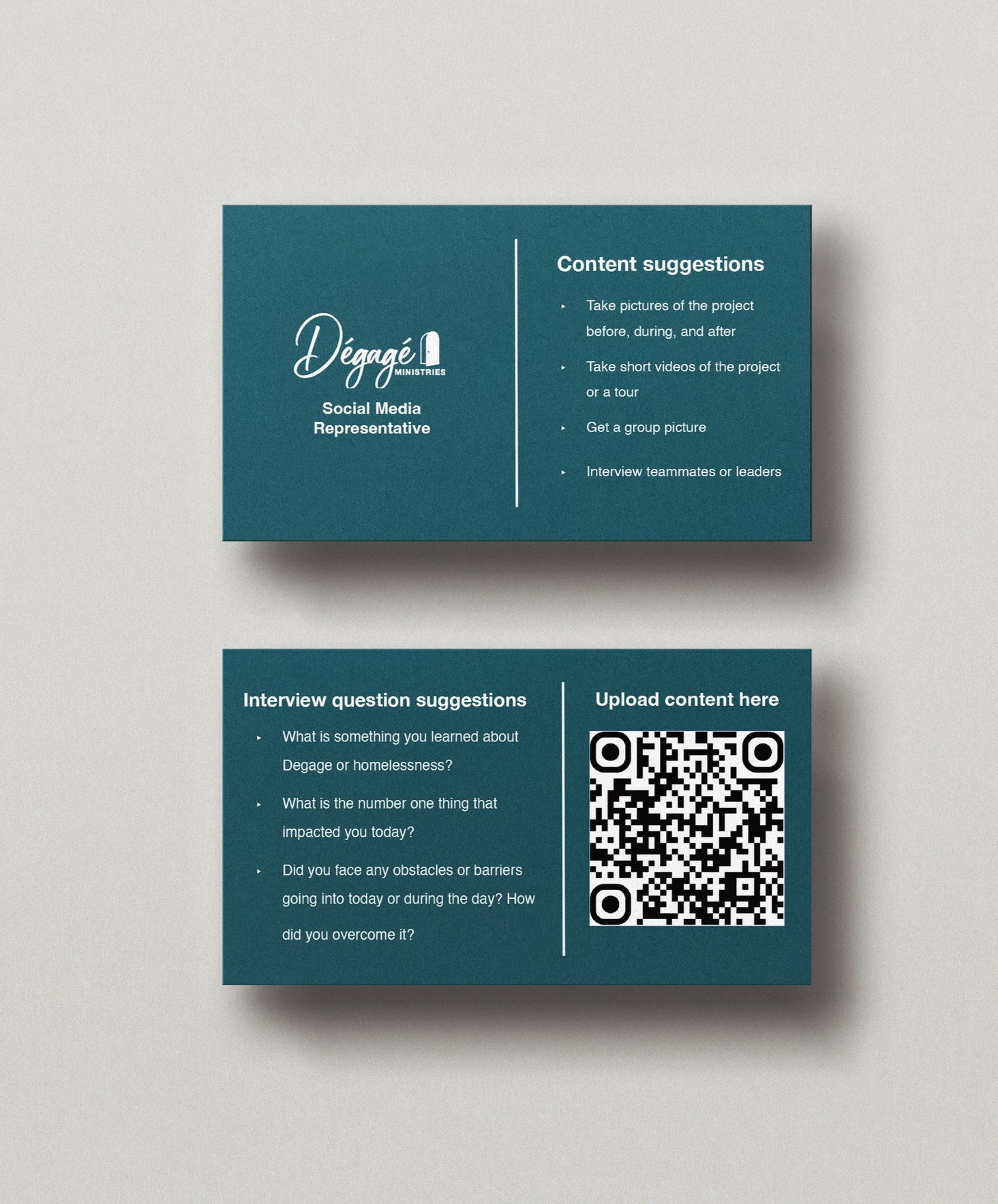 Social media representative cards are handed out to volunteer groups to designate one person of the group to take pictures and videos and upload them for me to post on social media.