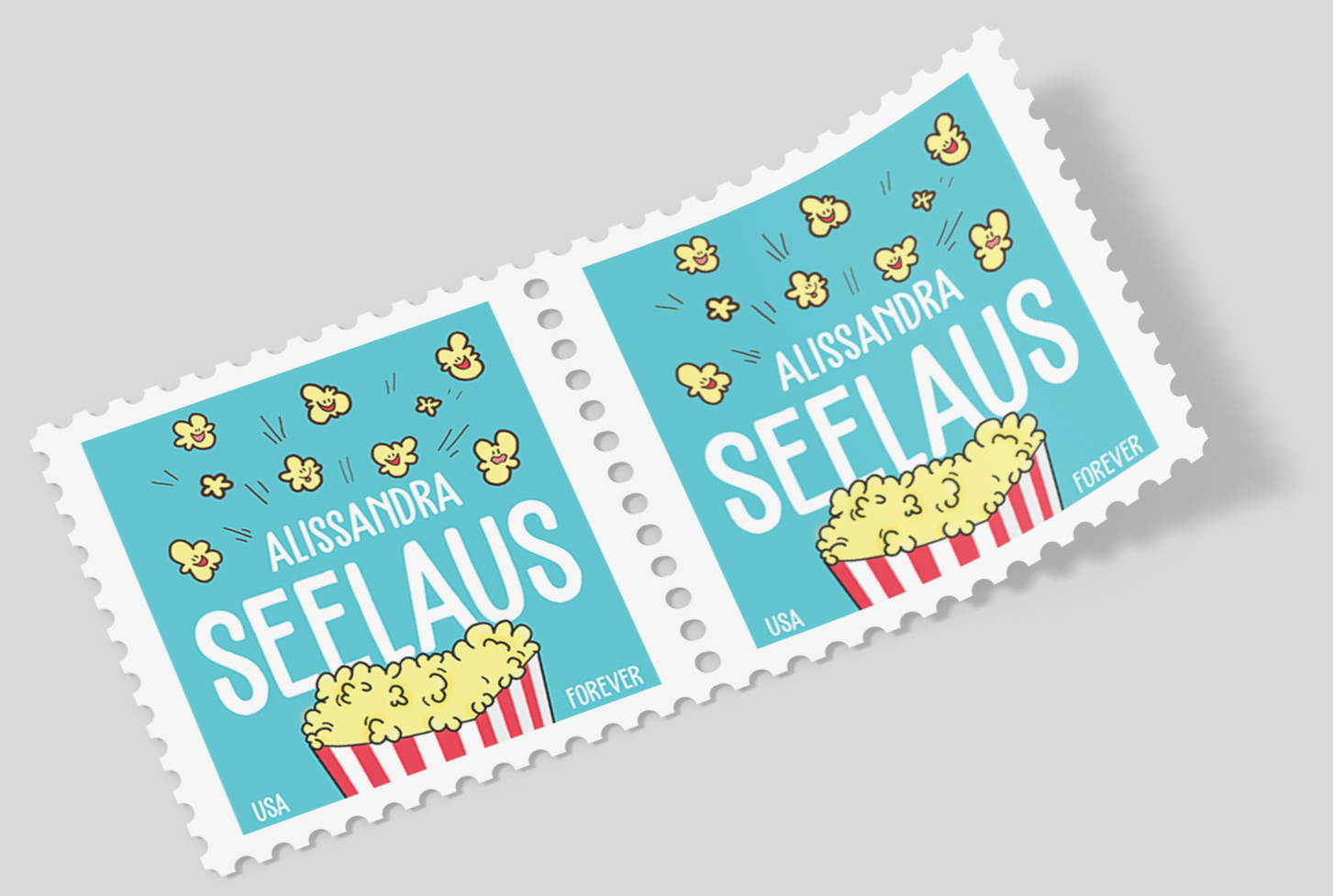 This project explores the work and visual language of graphic designer Alissandra Seelaus through the format of a postage stamp. The goal was to capture the essence of her design style while working within the constraints of a small-scale, highly detailed layout.