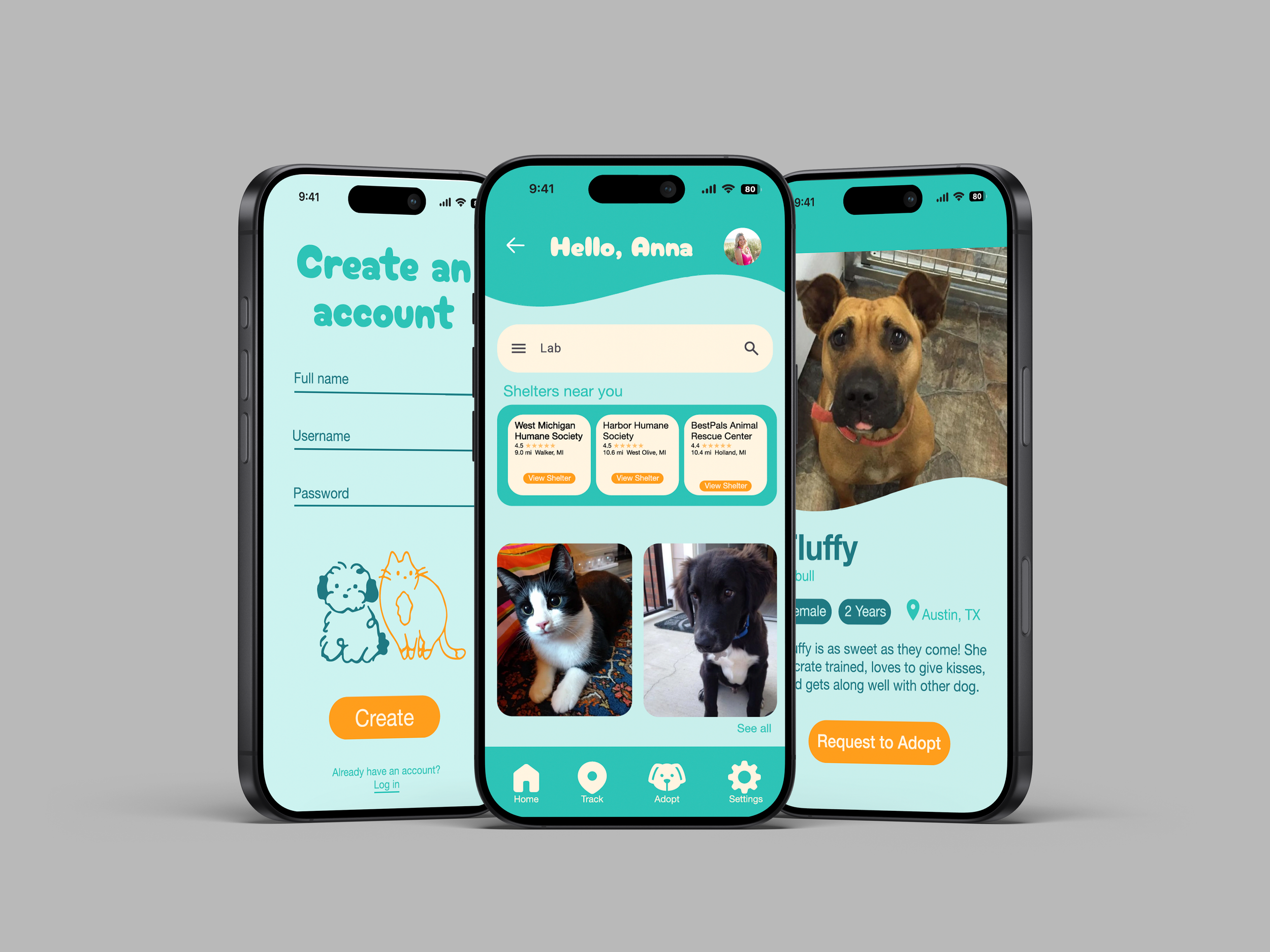 Presenting Snout Scout, an application that allows you to search and find a pet to adopt and get it delivered to you from anywhere! Snout Scout will help you find your perfect match. Use the app to apply and adopt a pet, use the desktop to search for a pet, and use your watch to get updates on where your furry friend is at and when you get a match.